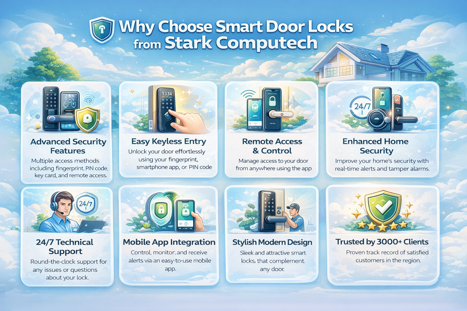 Stark Computech Pvt. Ltd. is a leading provider of custom IT and electronic security solutions for businesses across sectors. From E-Surveillance and smart access control to IT infrastructure, web development, and enterprise automation — we design intelligent, scalable systems that help organizations operate securely and efficiently. With a commitment to innovation, reliability, and service excellence, we’re your trusted technology partner in a rapidly transforming world. We offer many services are following: